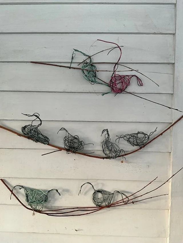 This exhibition will include baskets that Ankaret has made over several years and many new ones too. She finds using natural materials ideal for making birds using basketry techniques. Lately, she’s used a combination of wire - used for trellising grapes - for her smaller birds, as wire is more pliable for making smaller birds and coloured round reed.